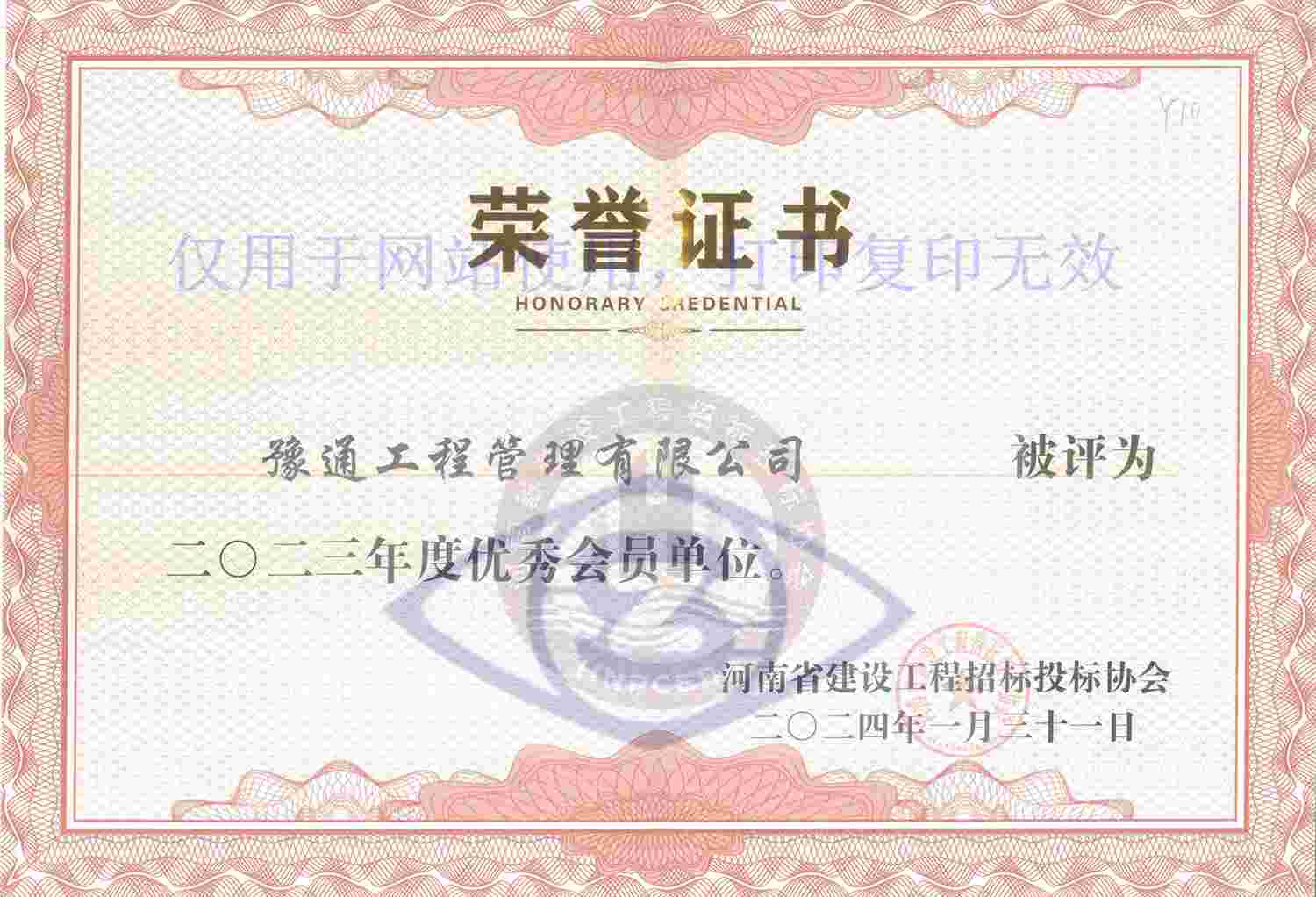 近日,河南省建設(shè)工程招標(biāo)投標(biāo)協(xié)會(huì)發(fā)布了《河南省建設(shè)工程招標(biāo)投標(biāo)協(xié)會(huì)關(guān)于2023年度優(yōu)秀會(huì)員單位評(píng)選結(jié)果的通知》(豫建招協(xié)字〔2024〕6號(hào)),豫通工程管理有限公司榮獲“2023年度優(yōu)秀會(huì)員單位”稱號(hào)。