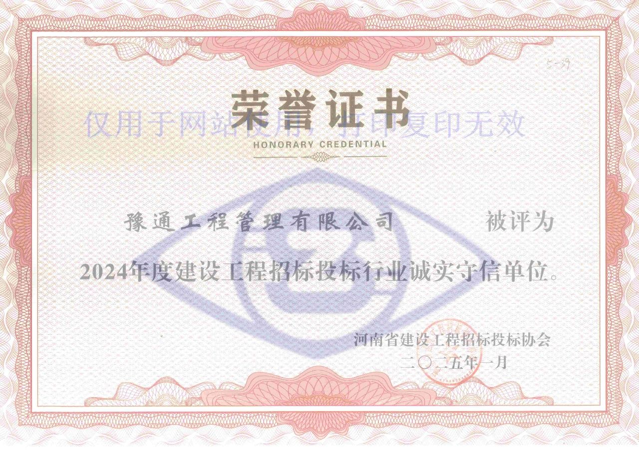 近日,河南省建設(shè)工程招標(biāo)投標(biāo)協(xié)會(huì)發(fā)布《關(guān)于公布2024年度建設(shè)工程招標(biāo)投標(biāo)行業(yè)誠(chéng)實(shí)守信單位的通知》,我公司憑借良好的信譽(yù),成功獲評(píng)“2024年度建設(shè)工程招標(biāo)投標(biāo)行業(yè)誠(chéng)實(shí)守信單位”榮譽(yù)稱號(hào)。
