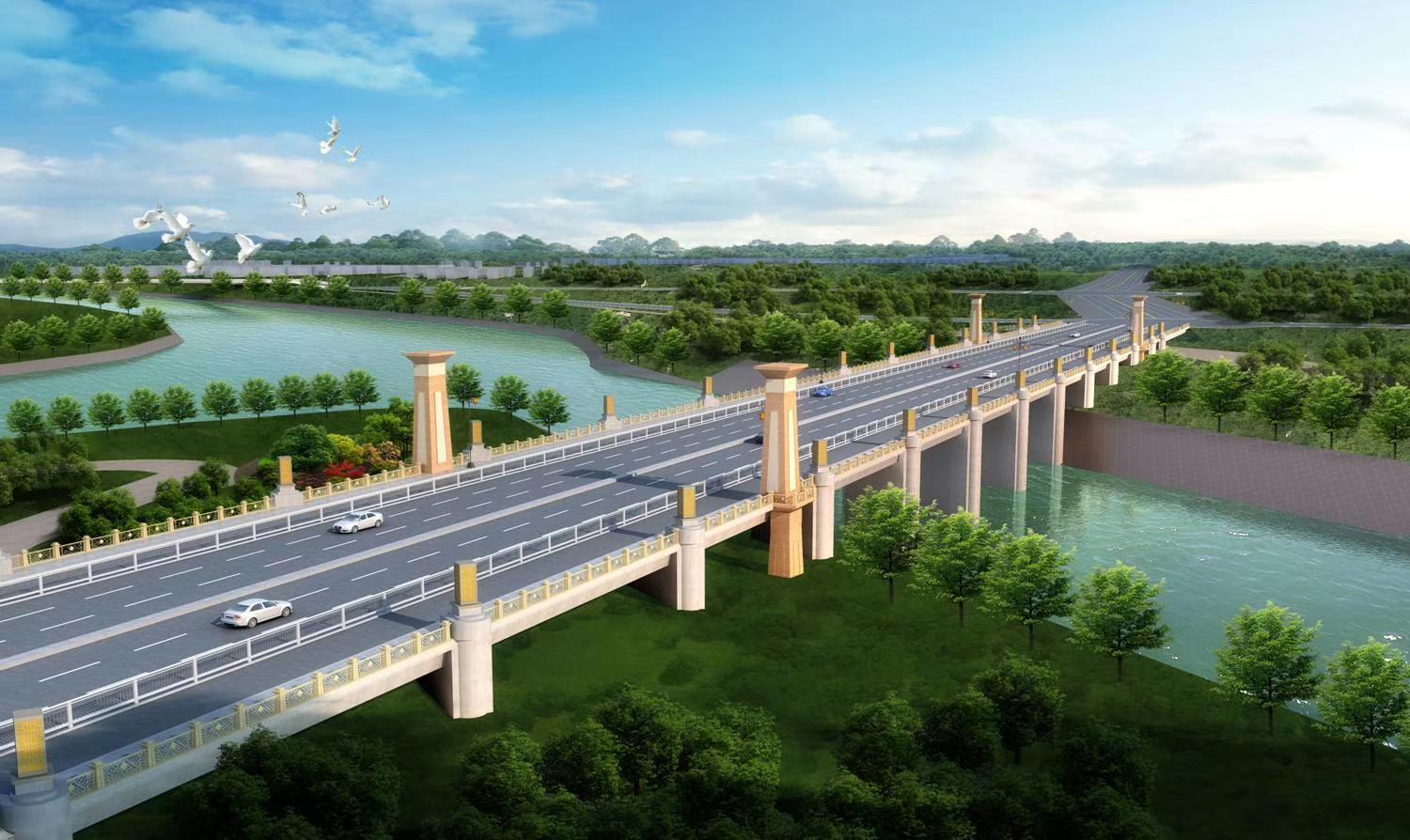 項目位于漯河市西城區(qū)S241南線上,在新開挖河道下游。丹江路規(guī)劃為城市主干道,設(shè)計時速50km/h,河道中心線與規(guī)劃道路中心線夾角呈130°。