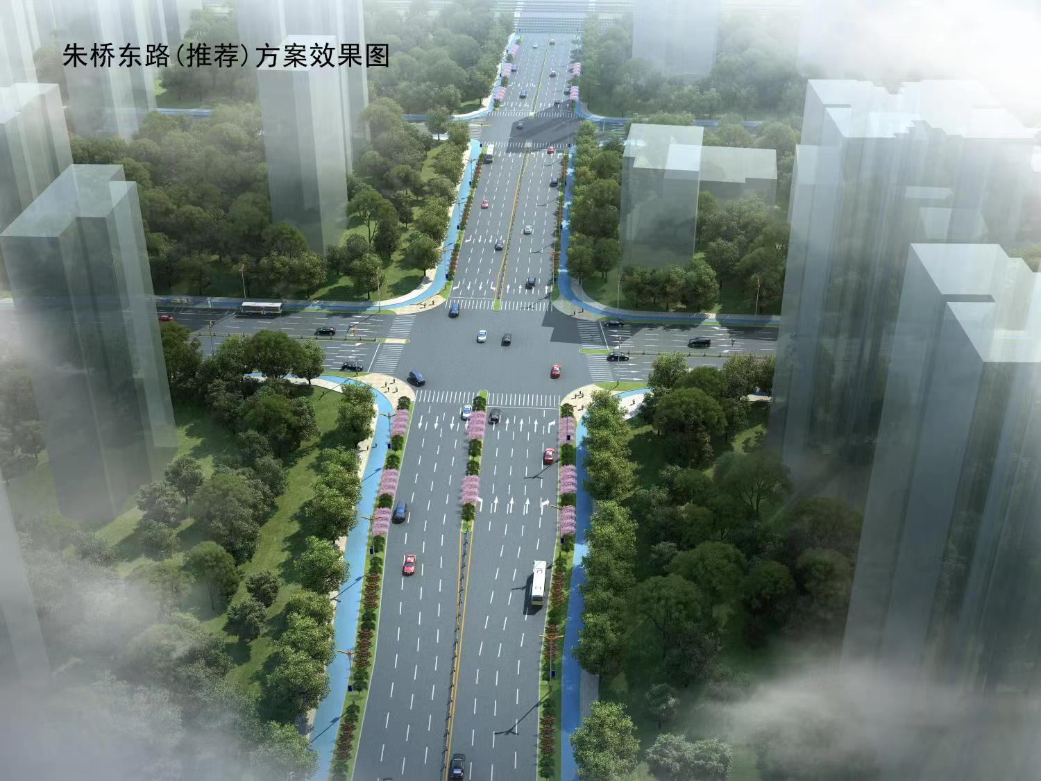5)朱橋東路西起東站西路,東至站前三路,全長約166m,規(guī)劃為城市次干道,道路紅線寬為44m,雙向8車道,設計速度為50km/h。