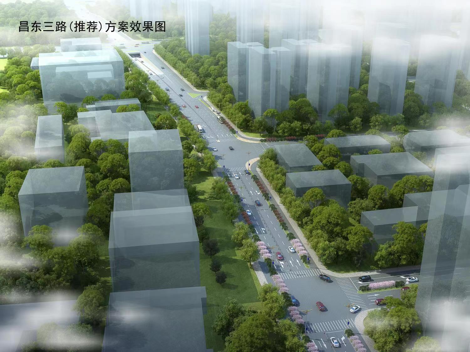 6)昌東三路西起胡板路,東至站前三路,全長812m,規(guī)劃為城市次干道,道路紅線寬為32m,雙向4車道,設計速度為40km/h。